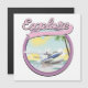Utforska logotypen med ett vackert lätt flygplan och handflatan träd.