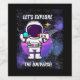 Låt universum utforska redot för ett äventyr i världen med den här lekande astronauten för tecknad, som alla är inriktade på och redo för att utforska det stora universum! Med det djärva budskapet "Låt oss utforska universum" fångar denna design trillet av upptäckt, nyfikenhet och de ändlösa utrymmesmöjligheterna. Perfekt för drömmare, utforskare och dem som tror på himmel:s gräns. Perfekt för T-shirts, klisterlappar, ryggsäckar med mera - för varje resa börjar med en dröm att utforska!