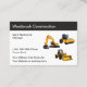 Moderna affärskort för uthyrning av byggutrustning i en redigerbar mall för online som en besökskort för coolan med tre byggriggar i bakgrunden. Bästa affärskort för en byggtjänst för kommersiell grävning eller schaktning. Framlagt om det storleka affärskortet lagrar.