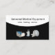 Uthyrning och leasing av sjukvårdsutrustning med bild tre biet av klassisk medicinsk utrustning i bakgrunden och klassiskt affärskort som du kan anpassa onlinen. Designad för en leverantör av medicinsk utrustning, leasing eller underhåll.