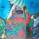 Utjämnad spiral i fläckar med ljusa färgader överlappar varandra och orsakar en lätt svällande effekt som liknar formen på en öppen blomma.