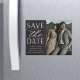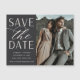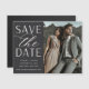En modern spara datum magneter-designad som passar ditt favoritfoto för lodrät eller porträtt-orienterad förlovning. "Spara datumet" visas bredvid fotot i chic- och skriptbokstäver, med namn, bröllop-datum och bröllop under.