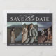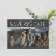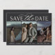 Ett modernt sätt att spara datumkortet designat för att rymma tre lodränas förlovning-foton som är placerade sida vid sida. "Spara datumet" visas nedanför i chic block och skriptbokstäver, tillsammans med namn, bröllop datum och bröllop. Kort bakåt om du vill visa ytterligare information om datum.