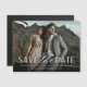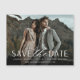En modern spara datum magneter-designad som passar ditt favoritfoto för vågrät eller landskapsinriktad förlovning med fullt. "Spara datumet" visas nära grund i fotot i vitt block och skriptbokstäver, med namn, bröllop-datum och bröllop under. Använda den extra textraden till bröllop webbplats eller ytterligare information.