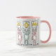 Roligt Mugg för Mamma. Roligt Rosa i kanindesign och Vita Mugg med illustration av kaniner i rosa och blått. Mors dag-gåvan mugg. Cute baby-kaniner. Kaninerna håller upp kort för att stava ut ord MAMMA.