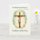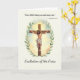 Denna högtidliga och vackra utformning hedrar minnet av utställningen av Heligan Kor, som firades den 14 september. I mitten står Kristus krossad, inramad av strålande ljus, mjuka moln och en omgivande andedräkt av grönt löv - symboler för hopp och inlösen. Vänstern från nummer 6:24, "LORD välsignar dig och behållan dig", ger ett lugnande budskap om gudomlig närvaro även genom uppoffringar. Detta kort är ett meningsfullt uttryck för tillit och vördnad som kan delas året om för att uppmuntra alla som söker hopp genom Kristus kor.