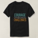 Den här t-shirt-designen firar modet med texten "Courage Embraces Challenges" som visas i ett dynamiskt multifärgad-schema. Ord "Courage" kan skrivas med ett fet och säkert teckensnitt, medan "Embraces" användor ett mer välkomnande och öppet stil. "Utmaningar" kan visas i ett något djärvare teckensnitt, men med ett dynamiskt flöde som representerar de ständigt föränderliga hindren. Paletten i färg skulle kunna övergå från varma och inbjudna huoner för "mod" och "embraces" till svalare och mer bestämda tonar för "utmaningar", som visuellt representerar det faktum att man konfronteras med svårigheter med mod. Utformningen är en kraftfull påminnelse till ansikte med ett modigt hjärta.