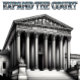 Illustration av den amerikanska högsta domstolens byggnad med ord Expandera domstolen skriven med metallisk typsnitt. Finns i många storlekar och stilar.