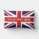 Utomhus- dekorativ kudde för brittisk facklig jackflagga. Engelska varar stolt över design med röda vit- och blåttfärger. Hem- dekor för anpassningsbar för trädgårds- uteplats, gård, bröllopsfest, terrass, restaurang, cafe, pub, pub, moderiktiga dekorationer för Etc. för utvändigt sittaområde. Tillfoga ditt egna personligfamiljefternamn, monogrambrev, ordstäv eller roliga citationstecken. UK United Kingdom, GB patriotiska Storbritannien avbildar.