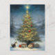 Utomhus Julgran med Kitten och Presenter Vykort