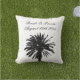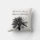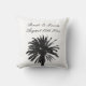 Utomhuskuddar för svartvita handflatan träd. Klassskripttypografi med exotiska handflatan träd löv. Svartvit design för utanför sommarplatsen i bröllop. En del av stor matchande samlingssviten med dekorationer för personlig och lyxartiklar för kontorsartiklar. Anpassa med namn av brud och triom. Utskrift på dubblans sida.