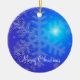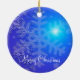 Utomhusjulprydnader med bild i snöflingor på blå bakgrund och anpassade.