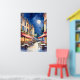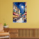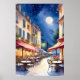 Poster om en ljusstark, fullt, lyser en charmerande gata med mysiga kaféer och levande blommor och bjuder in passerbyn för en natt ut. Kullstolens bana är adorberad med bord och stolar, som skapar en serenatmosfär och romantisk atmosfär.
