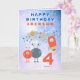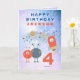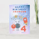 Skicka ditt 4-åriga blanksteg fläkt den här roligten rymdskepp, söta utomjordingar och måne och stjärnor på en lilac- och blå vattenfärgsbakgrund. Anpassa texten till dina egna krav.