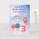 Skicka din lilla 3-åriga rymd-fan detta roliga rymdskepp, söta utomjordingar och mån och stjärnor illustration på en lila och blå akvarell bakgrund. Anpassa enkelt texten till dina egna krav.