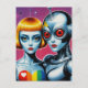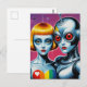 Utomjordinge och en robot i kärlek regnbåge vykort