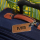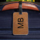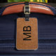Utövas bagagemärkre för Monogram med digitalt utskrivaven en grafisk läderlookbakgrund och manlig monogramnamninitialer som ska personifieras ögonblickligen direktanslutet. Formgivare för affärsresandear i högkvalitativ akryl på båda sidor.