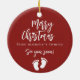 Modern roligt att se ditt kort skript, dina fotavtryck och dina hjärtan nyfödd bebis förväntar sig att keepsaké God jul från mamma tummy red träd ornament med anpassningsbarnas ultraljudfoto.