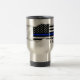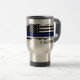 En beställnings- travel mug som presenterar en tunn blålinjenamerikanska flagganindikativ av polisen och tillsatta lagar. Flagga verkar utriven från muggen sig själv i en faux som 3-D stil verkställer. Under denna flagga är en fläck för din eller din gåvamottagares namn i en grungy bekymrad stilstilsort. Du har också alternativet av att ta bort grå färgrandmönster, genom att använda customizationen för att fungera och att klicka det synlighets"öga" symbolet.