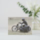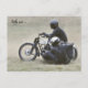 Vintage motorcykel och sidecar i en grässprint, dam lagtext - flickor kan göra vad de vill!