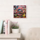 Den här väggklockan hedrar brandmän med en utformning som rymmer ett brandmärke lastbil, rädding och brandbricka. Det röda och gult färg-programmet, i kombination med en flagga bakgrund, symboliserar patriotism och mod. Det är ett perfekt sätt att visa uppskattning för dessa förstahandssvarare och deras hjälporganisation.