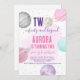 Utrymme Födelsedagsfest inbjudan för barn med "två oändliga och mer" text och med söta planetdesign.