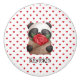 Den bedrövliga svarta och vita pandabjörnen håller ett kuvert med ro inuti den. Bakgrunden är vit med små röda hjärtan. Anpassa till flicka namn. Det finns andra samordnande knutar i min butik så att du kan blanda och matcha även för roligt!