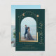 Mystical Grönt Guld Måne Stars Space Sparar datumet ett guld sol, måne och stjärnor Sol på ram med gröntens bakgrund. Inuti finns ditt favoritfoto och din anpassningsbar sparar datuminformationen. Lägg till ytterligare ett foto på motsatt sida. Anpassa genom att redigera texten i textrutorna. Designad för dig ©2022 Evco Studio www.zazzle.com/store/evcostudio