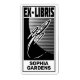 En Ex Libris-design med ett stil-motiv för träsnitt/linocut som skildrar en raketträff på en planet. Inspirerad av sovjetiska bilder av rymdutforskning från 50- och 60-talen