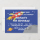 Denna roliga födelsedagsfest inbjudan presenterar ett raketspaceshipflyg vid några planet i rymden. Fullständigt anpassade.