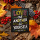 En vacker, inspirerande citat som lyder Älska varandra som dig själv