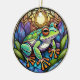Grönt Frog Ceramic Decorative Stached glass utseende Ornament