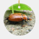 Den enorma vinrankaskalbaggen är den guld- solbrännan med fyra bruna fläckar längs sidan. Det är oskadligt, om inte du växer druvor. Två shots.