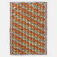 Rektangeldesigner som överlappar och kan likna något gyllene eller rostrött metallbitar som har 'bankats' och detta har orsakat dem flera små hack eller bucklor.
