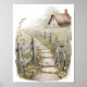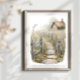 Ta in landskapets fredliga charm i ditt hem med den här fantastiska illustrationen av vattenfärgen. Med en stuga i tak, en väg, fält i lavare och en cykel i vintage, fångar den här grafiken hjärtat av stil i cottagecore. Perfekt för mysiga vardagsrum, shabby chic-kök eller som en tankfull gåva till älskare av långsam levande och pastoralisk skönhet.