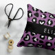 Utskrift av djur, Lila Leopard, Hearts, ditt namn Prydnadskudde