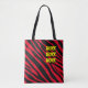 Med ett fet djurtryck i zebra stil är väskan perfekt både för arbete och för lek. Den ena sidan säger Work och den andra säger Play. Om färg i text och bakgrund jämförs framträder det tydligt. Teckensnitt med en skugga för mörk gör att ord dyker upp. För alla som kan motstå ett djurtryck.