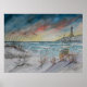 Fyrfyr med fyr eller solnedgång för vattenfärg som målar nautiska fyr bukt kusten sommarens söt moln och himlar solnedgångar konst