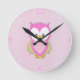 Utskrift av rosa uggla polka dots rosa mönster rund klocka