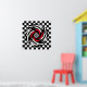 En abstrakt som fångar upp öga, en virvelformad och vit virvelformad med ljusröda accenter på en kontrollerad bakgrund.