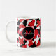 Snyggt, trendig, fet ko, tryck i svart och röd färg på mugg i monogram kaffe. I mitten och även på framsidan och baksidan finns det en svart cirkel med rött och vitt gräns. Inuti cirkeln finns ett monogram med platshållarröda bokstäver och namn i vit serif-typografi, som båda är ANPASSADE så att du kan lägga till ditt namn och din ursprungliga text. När det är dags för en pulserande kaffeuppdatering i mugg kan du väl inte gå fel med lite fet mönster... Välj bland ett stort urval av monogram mugg och andra dricksfartyg genom Berean Designer.