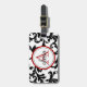 Utskrift av svart och röd monogrammad mask bagagebricka