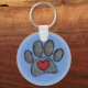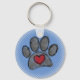 Hund- och hjärtfärgstryck i rött, svart och grått. Halvtonseffekten som används på bilden. Blåbakgrundsversion. Anpassningsbarnas nyckelringar. Gift-idé för hundälskare.