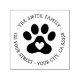 Returadress gummi frimärke med ett dekortryck med ett hjärta inuti, och ditt namn och adress runt tassutskriften i ett litet stil-teckensnitt.