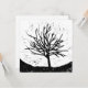 Svart och vit lino utskrift av en autumnal träd silhouette.