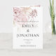 Utskrivbart Bröllopsprogram med utskrivet rosa med ro blommigt övertäckning. Tillgänglig digitalt och utskriven. Anpassa enkelt till dina egna detaljer.