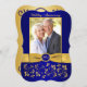 Denna eleganta kungliga blå och guldfärgade blommiga med rullar 50-årsjubileum för fotoinbjudan har ett tryckt guldband och en tryckt falskt graverad blå och guldfärgad medaljong. Den har ett mallområde där du kan ladda upp ditt eget digitala foto. Du kan ta bort den stiliserade kursiverade "Wedding Anniversary" eller "50th" texten. All text är anpassningsbar, liksom pappersvalen. ****VÄNLIGEN OBSERVERA att om du byter till guldfärgat metalliskt papper så är det en mycket mörk mässingsguld och det kommer att förändra färgerna i designen (gör fotot guld etc.), så jag rekommenderar INTE att använda det pappret. Filttpapper kommer också att förändra färgen på ditt foto något. OCKSÅ, om du ändrar typsnitt eller teckenstorlek, kanske din text inte passar längre. Zazzle kommer inte att redigera någonting för stavfel, justering eller någonting annat, och jag kommer inte att se din inbjudan. Allt kommer att skrivas ut som det visas på din skärm. Om du behöver hjälp med inbjudan, vänligen kontakta mig INNAN du beställer den. Denna inbjudan är utformad för att passa den 5x7