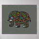 Dekorativt grafiskt intryck av en schackmönstrad elefant (för människor som gillar djur, natur och lustigt sött sak). Coola för barnens rumsvägg