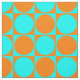 Blåa och orangefärgade fyrkanter och cirklar i ett mönsterrutor dekorerar denna tryckta bomullsväv. "Anpassa den!" gör det möjligt att anpassa den benvita bakgrundsfärgen. Om en produkt som ännu inte publicerats har fångat dina ögon, använd kontaktknappen nedan.