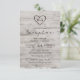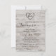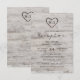 Utformade Hjärtan Rustik Björkträ med Åldrad Grå & Off Vit Björkträdesign, och ett slitaget patina väderbitet utseende. Denna återvunna trädesign har parets initialer ingraverade i hjärtformen i trädet. Även slitna typsnitt country chic-teckensnitt, tillsammans med ett elegant vintage handskriftskrift-teckensnitt. Designen är perfekt för en höst-, vinter-, vår- eller sommarbröllop och kan användas för alla säsonger - Personlig Bröllopsmottagning Inbjudan!